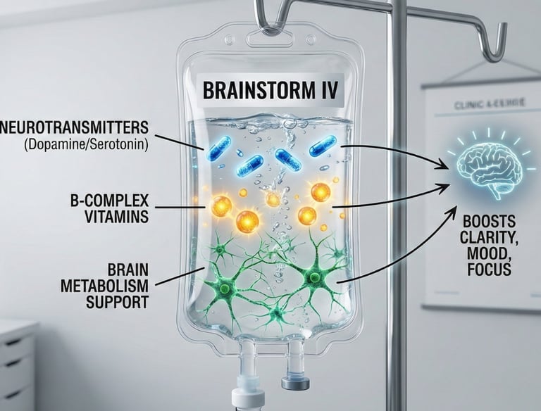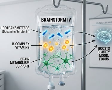 The Brainstorm IV supports neurotransmitter production, B-vitamin levels, and healthy brain metabolism. It’s ideal for boosting mental clarity, mood, and focus during demanding weeks.