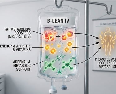 B-Lean is a full IV infusion with metabolic support. Lipo+ is a powerful injection containing methionine, inositol, choline, and B12.