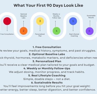 Most weight loss programs focus on willpower. We focus on biology, habits, and real-life coaching that fits your schedule, your stress level, and your goals.